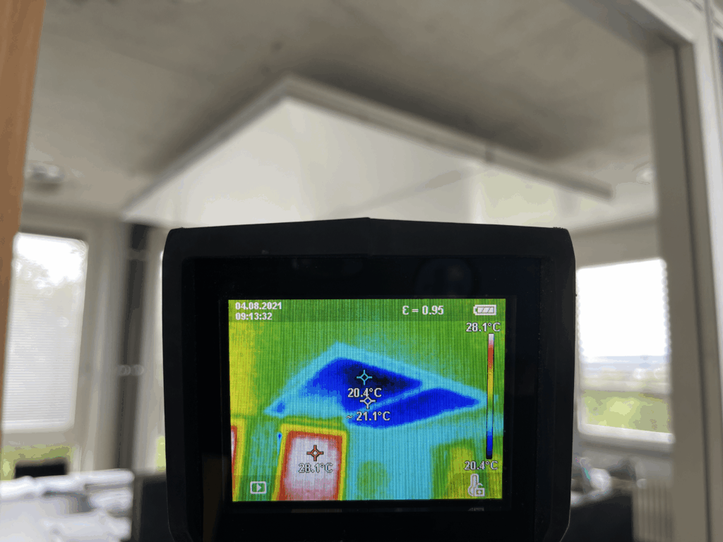 Im Spitzenlastfall beim Kühlen wird die Kühlfläche mit ca. 12-13 °C Strahlungsungstemperatur betrieben.