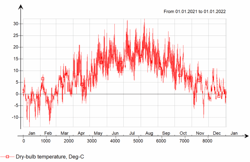 Der Klimadatensatz für den Standort Erfurt/Weimar zeigt folgende Lufttemperaturen über den Jahresverlauf: